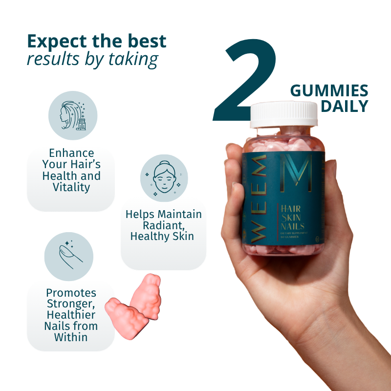 Hair.Skin.Nails promotes your hair, skin and nails overall health, strength and growth. See yourself better in the mirror with Weem.