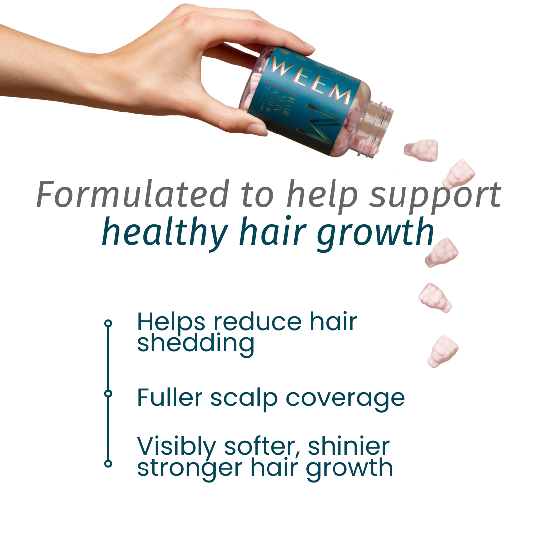 Hair.Skin.Nails promotes your hair, skin and nails overall health, strength and growth. See yourself better in the mirror with Weem.
