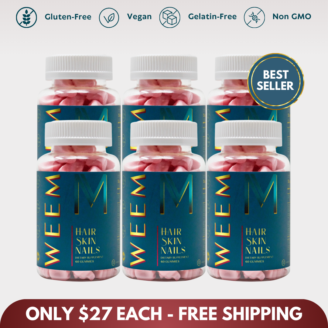 Hair.Skin.Nails promotes your hair, skin and nails overall health, strength and growth. See yourself better in the mirror with Weem.