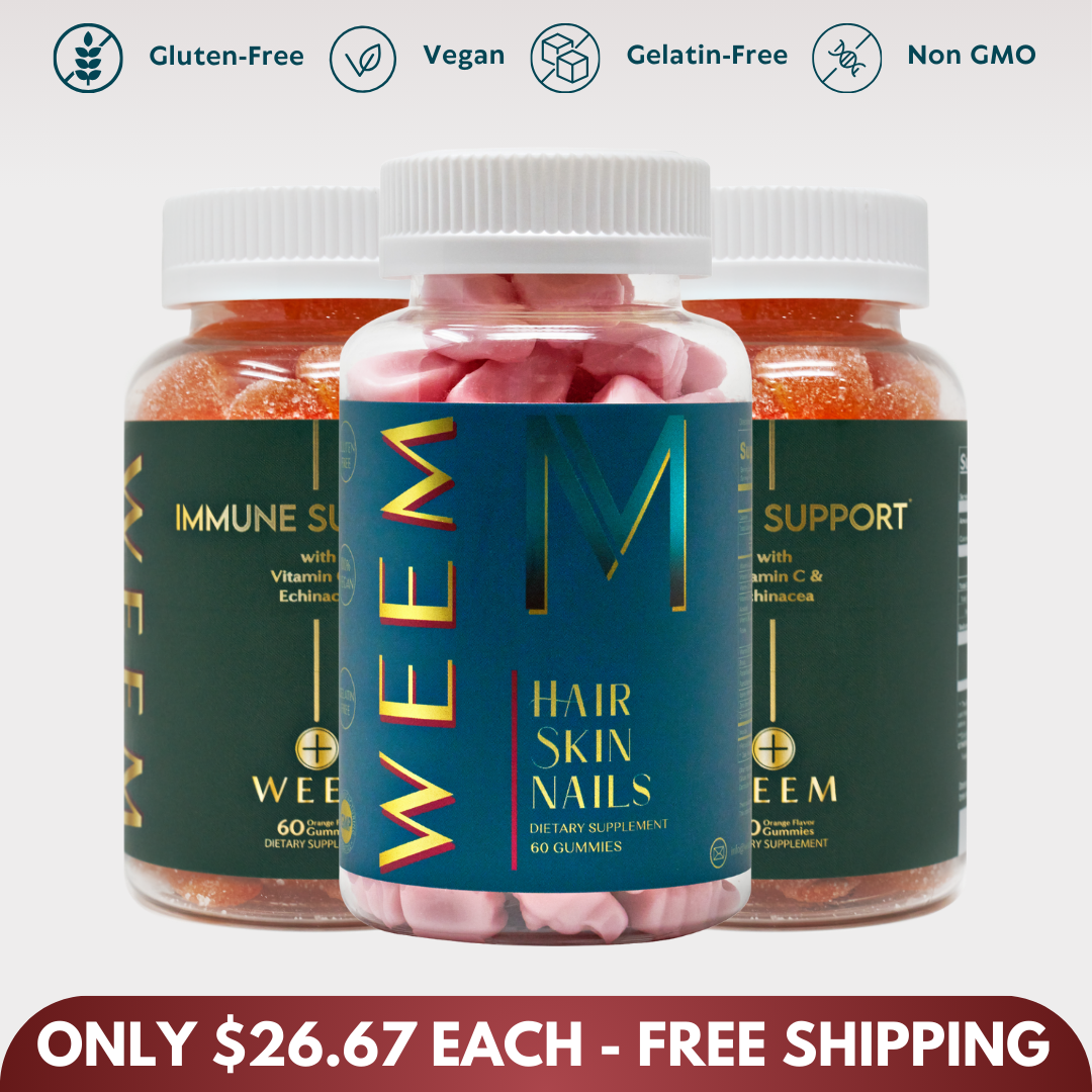 Hair.Skin.Nails promotes your hair, skin and nails overall health, strength and growth. See yourself better in the mirror with Weem.